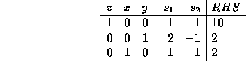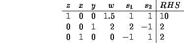 Note that this tableau has the same basic variables and the same variable values (except for z) that our previous solution had. Does this represent an optimal solution? It does only if the cost row is all non-negative. This is true only if